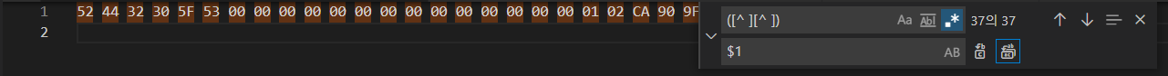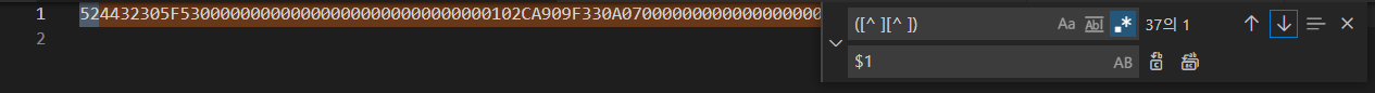 vscode에서 공백없는 Hex문자열을 2글자마다 공백을 넣기위해 사용한 vscode 정규식 공유합니다.